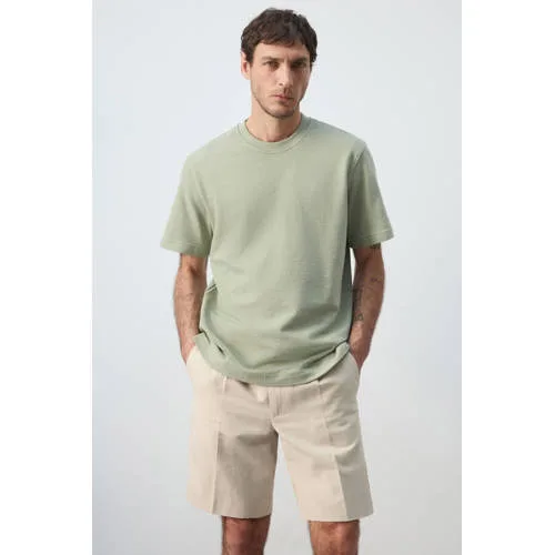 Zet een rustige, moderne basis in je garderobe met dit groen katoenen heren T-shirt van Mango Man. De egale kleur en de regular fit maken het een makkelijk te combineren item voor elke dag. De korte mouwen en de ronde hals geven een tijdloze uitstraling, terwijl de rechte zoom zorgt voor een nette, ontspannen look.Details die je elke dag draagt Gemaakt van 100% katoen, voor een zachte touch op de huid Regular fit, valt comfortabel zonder te wijd of strak te zitten Ronde hals voor een klassieke, veelzijdige uitstraling Korte mouw, ideaal voor onder een trui, overhemd of solo in de zomer Effen groene kleur, makkelijk te combineren met jeans, chino of short Rechte zoom voor een verzorgde look, zowel in als over de broek gedragen Geen borstzak of sluiting, voor een rustige en minimalistische stijlAltijd raak met Mango ManMango Man staat bekend om moderne kleding die goed in het dagelijks leven past. De focus ligt op heldere lijnen, fijne materialen en draagbare kleuren, zodat je garderobe overzichtelijk en stijlvol blijft. Dit T-shirt sluit daar naadloos op aan en vormt een betrouwbare basic waar je lang plezier van hebt.Een fijne, groene basic die je moeiteloos meeneemt in al je dagelijkse combinaties.