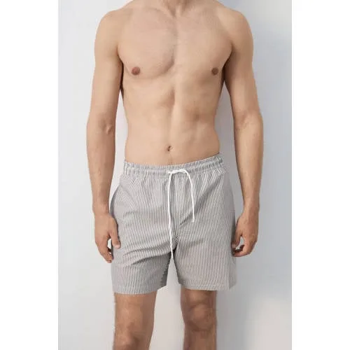 Mango Man seersucker zwemshort beige/wit Prijzen