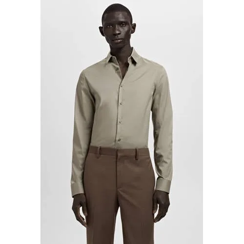 Dit Mango Man slim fit overhemd is een gestroomlijnde basis voor een verzorgde look. De slanke pasvorm volgt het lichaam op een subtiele manier en past goed onder een colbert of trui. Dankzij de lange mouwen en de klassieke kraag ontstaat een nette uitstraling die geschikt is voor werk, diner of formele momenten. Het effen ontwerp maakt combineren eenvoudig met zowel een chino als een jeans.Verzorgde details voor elke dag Slim fit pasvorm voor een aangesloten silhouet Lange mouwen met manchetten voor een nette afwerking Klassieke kraag die mooi blijft onder een colbert Knoopsluiting over de volledige lengte aan de voorkant Effen kleur zonder borstzak voor een rustig beeld Gemaakt van katoen met polyamide en elastomeer voor licht stretchcomfortVeelzijdig in gebruikDit overhemd leent zich goed voor werkdagen op kantoor, afspraken buiten de deur en gelegenheden waar een verzorgde outfit gewenst is. Door de effen kleur en slanke pasvorm blijft de stijl rustig, ook in combinatie met een das of opvallende riem.Mango Man: moderne stijl met een heldere lijnMango Man richt zich op eigentijdse herenkleding met aandacht voor pasvorm en draaggemak. De ontwerpen zijn doordacht, met duidelijke lijnen en praktische details die aansluiten op een moderne levensstijl.Een stijlvolle basis die moeiteloos meebeweegt met uiteenlopende momenten op de dag.