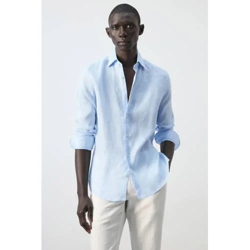 Ga voor een luchtige, verzorgde look met dit lichtblauwe linnen overhemd voor heren van Mango Man. De slim-fit pasvorm sluit mooi aan op het lichaam en geeft een moderne uitstraling, terwijl de 100% linnen stof juist licht en ademend blijft. Ideaal voor warme dagen of voor een nette, maar relaxte outfit op kantoor of in je vrije tijd.Linnen comfort in een moderne pasvorm Gemaakt van 100% linnen, een luchtige stof die prettig aanvoelt op de huid Slim-fit pasvorm voor een moderne, aansluitende look Klassieke overhemdkraag voor een verzorgde uitstraling Lange mouwen met knoopmanchetten voor een nette afwerking Volledige knoopsluiting aan de voorkant, makkelijk aan en uit te trekken Rechte zoom, ook mooi om over de broek te dragen Effen lichtblauwe kleur die eenvoudig te combineren is Wasbaar op 30 graden, geschikt voor dagelijks gebruikVan casual tot smart casualDit overhemd past goed bij een chino of jeans voor een casual look. Voor een smart casual outfit combineer je het met een nette broek en leren schoenen. De rechte zoom maakt het geschikt om zowel in als over de broek te dragen, afhankelijk van de gelegenheid.Mango Man: moderne stijl voor elke dagMango Man staat voor eigentijdse mode met een heldere stijl. De collecties combineren moderne pasvormen met tijdloze basics, zodat je eenvoudig outfits samenstelt die bij jouw leven passen. Je kiest met Mango Man voor kleding die er verzorgd uitziet en prettig draagt, dag na dag.Een veelzijdig overhemd dat je het hele seizoen door blijft dragen.