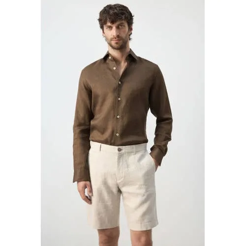 - Bij wehkamp.nl kun je Mango Man slim casual overhemd met linnen bruin kopen voor slechts €59,99