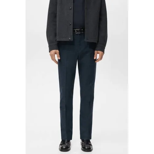 Deze Mango Man slim fit chino is een praktische basis voor nette en ontspannen looks. De broek is gemaakt van zacht katoenen flanel en heeft een donkerblauwe ruit in marinetint. De gestreken vouw aan de voor- en achterkant zorgt voor een verzorgde uitstraling, terwijl de slim fit het silhouet modern en slank laat ogen. Een klein percentage elastomeer geeft de stof wat stretch, zodat de broek soepel meebeweegt.Verzorgde details in een ruitdessin Chino-model met slim fit voor een aansluitende pasvorm Zacht katoenen flanel met ruitprint in donkerblauw en marine Gestreken vouw aan voor- en achterzijde voor een nette look Twee zijzakken en twee paspelzakken met knoop aan de achterkant Riemlussen en een rits- en knoopsluiting Binnenkant gevoerd met een combinatie van polyester en katoen Een beetje stretch door de toevoeging van elastomeerVan werkdag tot weekendDeze chino past goed bij een overhemd en nette schoenen voor een zakelijke dag. Voor een meer casual moment combineer je de broek met een trui of T-shirt en sneakers. De ruit geeft elke outfit direct wat meer karakter, zonder dat het overheerst.Mango Man: moderne herenkledingMango Man staat bekend om eigentijdse herenkleding met aandacht voor pasvorm en draaggemak. De collecties sluiten aan op de stijl van alledag, met kledingstukken die goed te combineren zijn en lang in de garderobe meegaan.Een comfortabele chino met ruitdessin die moeiteloos meegaat van kantoor naar vrije tijd.