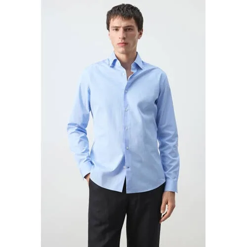 Voor een frisse, moderne basis in je garderobe is dit lichtblauw slim fit heren overhemd van Mango Man een betrouwbare keuze. Het gestreepte design geeft een rustige, maar eigentijdse uitstraling en past net zo makkelijk bij een jeans als bij een chino. De slim fit pasvorm sluit mooi aan zonder te strak te zitten, terwijl de katoenen stof soepel en comfortabel aanvoelt op de huid.Details die je elke dag draagt Gemaakt van 100% katoen voor een ademend en zacht draaggevoel Slim fit pasvorm die het lichaam volgt voor een moderne look Lichtblauwe strepen voor een frisse, tijdloze uitstraling Klassieke overhemdkraag voor zowel casual als nette combinaties Lange mouwen met knoopmanchetten, gemakkelijk op te rollen Afgeronde zoom, ook mooi om los over een broek te dragen Voorste knoopsluiting voor eenvoudig aan- en uittrekken Wasbaar op 30 graden, praktisch in het dagelijks onderhoudVan werkdag tot weekendDit casual overhemd voelt zich thuis op kantoor, tijdens een etentje of een vrije dag in de stad. Draag het in de broek met nette schoenen voor een verzorgde uitstraling of combineer het los over een T-shirt met sneakers voor een ontspannen look.Mango Man: moderne stijl, every dayMango Man staat bekend om zijn moderne, toegankelijke collecties voor elke dag. De focus ligt op actuele pasvormen, doordachte details en materialen die prettig aanvoelen. Zo voeg je met dit overhemd eenvoudig een stijlvol en betrouwbaar basisstuk toe aan je kledingkast.Een gestreept overhemd waar je keer op keer naar grijpt.
