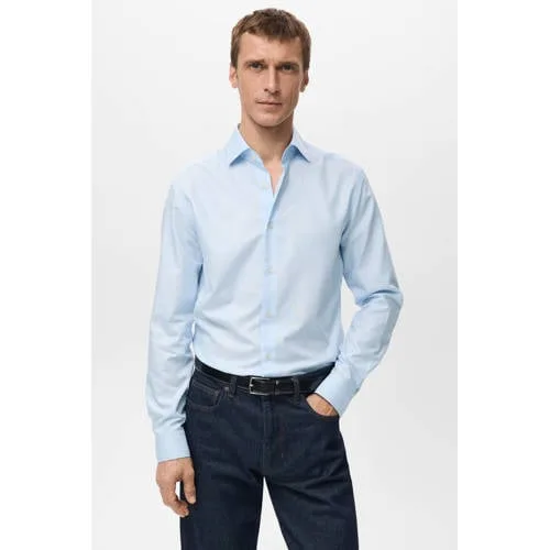 Dit Mango Man slim fit herenoverhemd katoen streep is een strak gesneden basisstuk voor een verzorgde look. Het overhemd heeft een slim fit pasvorm die het lichaam volgt zonder strak aan te voelen. De lange mouwen, klassieke kraag en fijne streepprint geven een rustige en verzorgde uitstraling. Dankzij de knoopsluiting is het overhemd eenvoudig aan en uit te trekken en naar wens te openen.Stijlvolle details voor elke dag Slim fit pasvorm voor een modern en aansluitend silhouet Gemaakt van 100% katoen voor een zachte en ademende stof Lange mouwen met knopen bij de manchetten voor een nette afwerking Klassieke kraag die goed onder een trui of colbert valt Streepprint voor een verzorgd en tijdloos effect Geen borstzak voor een rustige en strakke voorkant Volledige knoopsluiting aan de voorzijdeVeelzijdig in gebruikDit overhemd past goed bij zowel een nette broek als een casual jeans. Het kan gesloten gedragen worden voor een formele uitstraling of deels geopend met een T shirt eronder voor een meer ontspannen moment.Mango Man als vertrouwde keuzeMango Man richt zich op moderne kleding met een heldere stijl en draagbaar ontwerp. Het merk combineert actuele pasvormen met herkenbare details, zodat je kunt rekenen op consistente maten en een verzorgde afwerking.Een doordacht overhemd dat je garderobe op een rustige en stijlvolle manier aanvult.