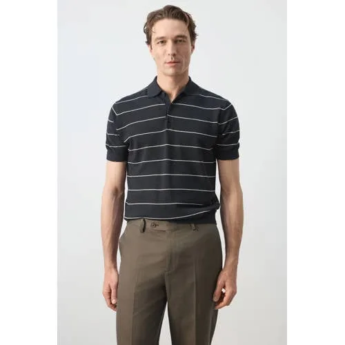 Mango Man slim gestreepte polo met linnen donkerblauw Prijzen