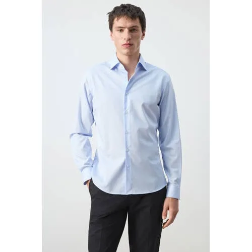 Voor een verzorgde look op kantoor of tijdens een diner is dit slim-fit heren overhemd van Mango Man een betrouwbare basis. De lichtblauwe kleur met subtiele strepen oogt fris en modern, terwijl de slanke pasvorm mooi aansluit zonder strak te voelen. Katoen en lyocell samen geven de stof een zachte touch en een soepele valling, zodat je je de hele dag vrij kunt bewegen.Lichtblauw overhemd met gestreept design Modern slim-fit model dat het lichaam volgt voor een nette, slanke uitstraling Lichtblauwe streep met klassieke overhemdkraag voor een tijdloze zakelijke look Gemaakt van 70% katoen en 30% lyocell voor een zachte, gladde stof Lange mouwen met knoopmanchetten voor een verzorgde afwerking Standaardlengte met afgeronde zoom, ook geschikt om los over een broek te dragen Volledige knoopsluiting waardoor de boordhoogte makkelijk aan te passen is Wasbaar op 40 graden, praktisch in het dagelijks onderhoudVoor werk, afspraak of nette casual dagDit lichtblauwe overhemd past goed bij een chino of nettere pantalon voor een zakelijke dag. Op een meer casual moment combineer je het eenvoudig met een donkere jeans en sneakers. Door het gestreepte dessin krijgt elke outfit direct een verzorgde en moderne uitstraling.Stijlvolle basics van Mango ManMango Man staat bekend om moderne collecties met een heldere, eigentijdse stijl. De focus ligt op goed gesneden pasvormen en doordachte details die aansluiten bij het dagelijkse leven. Met dit overhemd haal je een betrouwbaar kledingstuk in huis dat seizoen na seizoen zijn plek in je garderobe behoudt.Een gestreept overhemd waar je op kunt bouwen, van eerste vergadering tot laatste afspraak.