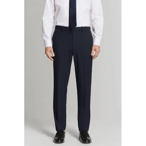 Voor een verzorgde look bij elke formele gelegenheid is deze Mango Man pantalon in marinekleur een betrouwbare basis. Het slim-fit model sluit nauw aan langs de benen en volgt de lijnen van het lichaam zonder strak aan te voelen. De diepe donkerblauwe kleur laat zich makkelijk combineren met een overhemd, coltrui of bijpassend colbert voor een compleet pak.Strak silhouet met doordachte details Slim-fit pasvorm voor een moderne, smalle lijn Dubbele knoopsluiting en ritssluiting aan de voorkant voor een nette afwerking Twee zijdezakken en twee paspelzakken met knoop aan de achterkant voor kleine essentials Riemlussen in de taille zodat een riem altijd goed blijft zitten Geperste vouw aan de voor- en achterkant voor een scherpe, verzorgde look Gedeeltelijke voering aan de binnenkant voor extra draagcomfort Soepel materiaal met lichte stretch voor meer bewegingsvrijheidKlaar voor bruiloft, feest of formele afspraakDeze pantalon past goed bij feestelijke momenten zoals een bruiloft of een diner, maar ook bij formele afspraken. In combinatie met een colbert uit dezelfde lijn creëer je eenvoudig een pak. Met een overhemd en nette schoenen ontstaat in een paar stappen een representatieve outfit.Mango Man: moderne herenkledingMango Man richt zich op eigentijdse herenkleding met aandacht voor pasvorm en detail. De collecties sluiten aan bij de moderne garderobe en bieden draagbare items voor werk, vrije tijd en speciale gelegenheden. Zo bouw je rustig aan een garderobe waar je lang plezier van hebt.Een pantalon voor wie houdt van een moderne, verzorgde uitstraling bij formele momenten.