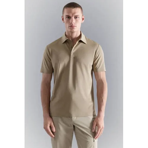 Deze lichtbeige slim-fit herenpolo van Mango Man combineert een verzorgde uitstraling met praktisch comfort. De zachte, gladde stof sluit mooi aan op het lichaam en volgt je bewegingen dankzij het toegevoegde elastaan. Door de warmteregulerende eigenschappen blijft je lichaam aangenaam op temperatuur, zowel tijdens een drukke werkdag als in je vrije tijd.Ademend comfort met technische stof Warmteregulerende stof met optimaal ademend vermogen voor een stabiele temperatuur Coolmax® materiaal voert vocht weg van de huid zodat je langer een droog gevoel houdt Geschikt voor zowel koelere dagen, wanneer je graag warm blijft, als warme momenten door het lichte en koele draaggevoel Slim-fit pasvorm voor een moderne, nauw aansluitende look Polokraag met drukknoopsluiting voor een nette, maar ontspannen uitstraling Korte mouwen en rechte zoom met kleine zijsplitjes voor extra bewegingsvrijheid Effen lichtbeige kleur, makkelijk te combineren met jeans, chino of korte broekVoor werk, weekend en tussendoorDeze polo leent zich goed voor dagen waarop je veel in beweging bent en toch verzorgd voor de dag wilt komen. Draag de polo op een chino voor een nette afspraak of met een donkere jeans voor een meer casual combinatie. De ademende stof maakt het ook een fijne keuze voor onderweg of tijdens een stedentrip.Mango Man: moderne stijl voor elke dagMango Man staat bekend om eigentijdse collecties met een duidelijke focus op draagbare mode voor elke dag. De ontwerpen hebben een moderne snit en sluiten aan bij actuele trends, zonder dat ze snel uit de mode raken. Met deze polo haal je een betrouwbaar basisstuk in huis waar je het hele seizoen naar grijpt.Een praktische, moderne polo die je garderobe op een comfortabele manier compleet maakt.