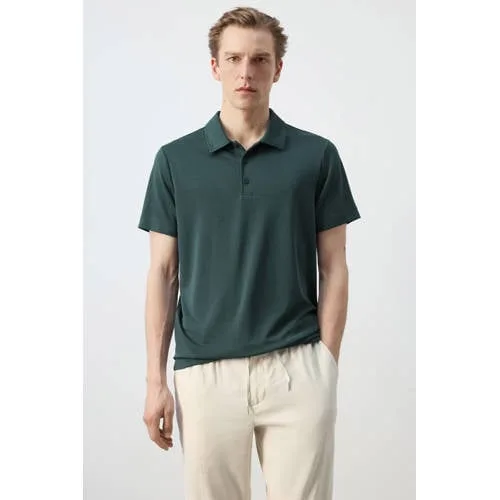 Deze donkergroene heren polo van Mango Man is een moderne basic voor elke dag. Het slim fit silhouet volgt subtiel de lijnen van het lichaam en zorgt voor een verzorgde uitstraling, zonder strak aan te voelen. De lichte, platte structuur geeft de stof een strakke look en voelt soepel en luchtig aan, ideaal voor warme dagen of gelaagd onder een vest of jasje.Licht en verzorgd in één Lichtgewicht kwaliteit met platte structuur voor een nette, gladde look Gemaakt van 68% viscose voor een soepele touch en prettig draagcomfort Slim fit pasvorm die slank oogt en mooi aansluit op het bovenlichaam Klassieke polokraag met korte knoopsluiting bij de hals Korte mouwen en standaardlengte, makkelijk te combineren op een chino of jeans Effen donkergroene kleur, eenvoudig te matchen met zowel lichte als donkere onderstukken Geen borstzak, wat zorgt voor een rustige en strakke voorkantVoor werk, weekend en alles ertusseninDe polo leent zich goed voor allerlei momenten. Draag hem op een chino met nette sneakers voor een casual werkdag, of combineer met een korte broek voor een relaxed weekend. Onder een licht jasje blijft de kraag mooi in vorm en oogt de outfit direct verzorgd.Mango Man: moderne stijl voor elke dagMango Man staat bekend om eigentijdse collecties waarin draagbaarheid en stijl hand in hand gaan. De ontwerpen sluiten aan op het moderne straatbeeld, met aandacht voor pasvorm en detail. Zo haal je met deze polo een betrouwbaar kledingstuk in huis dat makkelijk in je garderobe past.Een veelzijdige polo die je eenvoudig uit de kast pakt voor een nette, ontspannen look.