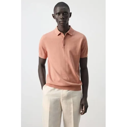 Geef je dagelijkse look een frisse update met deze pasteloranje heren polo van Mango Man. De zachte kleur zorgt voor een rustige, moderne uitstraling en past moeiteloos in je garderobe. Door het fijne breisel en het gebruik van 100% katoen voelt de polo soepel en comfortabel aan op de huid. De slim fit sluit subtiel aan op het lichaam zonder strak te zitten, zodat je er verzorgd uitziet op kantoor, tijdens een etentje of in het weekend.Verzorgde details in een tijdloos ontwerp Gemaakt van 100% katoen voor een ademend en prettig draaggevoel Fijn gebreide structuur voor een nette, moderne look Polokraag met knoopsluiting voor een klassieke uitstraling Geribde hals, mouwen en boord voor een mooie vormvastheid Rechte zoom en effen ontwerp, makkelijk te combineren met jeans of chino Slim fit pasvorm voor een slank en verzorgd silhouetPasteloranje polo voor allerlei momentenDe pasteloranje kleur maakt deze polo geschikt voor zowel casual als iets nettere momenten. Draag de polo met een donkere jeans voor een relaxed effect of met een chino voor een meer geklede outfit. De korte mouwen maken het geschikt voor warmere dagen, maar onder een licht jack blijft de polo ook in het tussenseizoen goed tot zijn recht komen.Mango Man: moderne stijl voor iedere dagMango Man staat bekend om eigentijdse collecties met een heldere, moderne uitstraling. De focus ligt op draagbare items met zorg voor pasvorm en details, zodat je eenvoudig een complete en stijlvolle garderobe opbouwt. Met deze polo kies je voor een betrouwbaar basisstuk dat je vaak uit de kast pakt.Een rustige, moderne polo die je het hele seizoen gemakkelijk combineert.