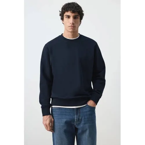Een veelzijdig basisitem voor elke dag, deze Mango Man sweater in marine is gemaakt van 100% katoen en voelt comfortabel en zacht aan op de huid. De effen kleur en het rustige ontwerp maken de trui eenvoudig te combineren met je bestaande garderobe, van jeans tot chino. De regular fit zorgt voor een ontspannen pasvorm die niet te strak en niet te wijd valt.Kenmerken van de katoenen sweater Gemaakt van 100% katoen voor een soepele en ademende stof Regular fit voor een comfortabele, rechtvallende pasvorm Standaard lengte die mooi op de heup valt Ronde hals met geribde afwerking voor een nette uitstraling Geribde boorden aan hals, manchetten en zoom voor extra vormvastheid Effen marine kleur, eenvoudig te combineren Geen zakken en geen sluiting voor een rustige, cleane lookAltijd goed te dragen, van werk tot weekendDeze trui met lange mouwen is geschikt voor uiteenlopende momenten. Draag de sweater op een jeans voor een casual dag of combineer met een nette broek voor een meer verzorgde uitstraling. De rechte zoom en het minimalistische ontwerp geven een rustige basis, ideaal om laagjes overheen of onder te dragen, zoals een T-shirt of overhemd.Mango Man, eigentijdse stijl voor elke dagMango Man staat voor moderne herenmode met aandacht voor pasvorm en details. De collecties volgen de actuele trends, maar blijven altijd draagbaar voor elke dag. Met deze sweater kies je voor een stijl die past bij een hedendaagse, verzorgde garderobe waarin comfort en een heldere uitstraling samenkomen.Een fijne sweater die keer op keer van pas komt in je dagelijkse outfits.