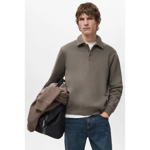 Deze Mango Man heren trui combineert het comfort van een sweater met de nette uitstraling van een polomodel. Het rechtvallende model in katoenmix voelt zacht en soepel aan en is daardoor geschikt voor zowel relaxte als meer geklede momenten. De groene kleur is exclusief online verkrijgbaar en geeft een moderne, frisse uitstraling, terwijl de effen uitvoering zorgt voor een rustige basis in je garderobe.Verzorgde polo-look in sweaterkwaliteit Regular fit met rechtvallende pasvorm, comfortabel om los te dragen of over een T-shirt Gemaakt van 81% katoen en 19% polyester voor een zachte, vormvaste stof Polokraag met knoopsluiting voor een nette, maar ontspannen uitstraling Lange mouwen met elastische, geribde manchetten voor een goede aansluiting rond de polsen Geribde zoom zorgt dat de trui mooi op de heup blijft vallen Effen ontwerp zonder zakken, makkelijk te combineren met verschillende stijlenVeelzijdig in dagelijks gebruikDeze polotrui is ideaal voor doordeweekse dagen. Draag het model op een chino of nette broek voor een verzorgde werklook, of combineer met een jeans voor een meer casual outfit. De sweaterachtige stof biedt extra comfort op koelere dagen.Mango Man: moderne stijl voor elke dagMango Man staat bekend om tijdloze items met een moderne twist. De collectie richt zich op kleding die goed aanvoelt, er verzorgd uitziet en gemakkelijk te combineren is. Zo bouw je stap voor stap een garderobe op waar je lang plezier van hebt.Een comfortabele essential die moeiteloos schakelt tussen casual en verzorgd.