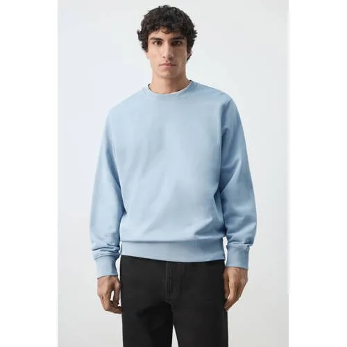 Deze lichtblauwe Mango Man sweater is een fijne basic voor iedere dag. De trui heeft een regular fit en valt in een standaard lengte, waardoor hij soepel over je T-shirt of overhemd valt. De ronde hals en de effen kleur zorgen voor een rustige uitstraling die makkelijk te combineren is, van jeans tot chino.Comfortabele basic met nette details Gemaakt van 100% katoen voor een zachte touch op de huid Regular fit voor een comfortabele, niet te strakke pasvorm Lange mouwen met geribde manchetten zodat de mouwen goed blijven zitten Ronde hals met ribboord voor een nette, afgewerkte look Effen lichtblauwe kleur, gemakkelijk te combineren met verschillende outfits Geribde zoom en rechte onderkant voor een rustig en verzorgd silhouet Geen zakken en geen sluiting voor een strak en clean designVeelzijdig in je dagelijkse garderobeDeze trui past bij veel momenten op de dag. Draag hem casual op een jeans in het weekend of combineer hem met een chino en nette sneakers voor een relaxte werkdag. Door de standaard lengte en rechte zoom kun je de trui zowel los als half ingestopt dragen.Stijlvol en eigentijds met Mango ManMango Man staat voor moderne herencollecties met een frisse, actuele uitstraling. De focus ligt op draagbare items die goed aanvoelen en er verzorgd uitzien. Met deze sweater kies je voor een kledingstuk dat past binnen een hedendaagse garderobe en waar je seizoen na seizoen plezier van hebt.Een rustige, lichtblauwe trui die je kledingkast direct completer maakt.