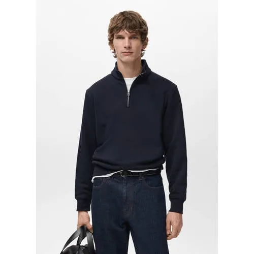 Deze Mango Man heren trui met halve rits is een praktische basic voor elke dag, met nette details die het geheel een verzorgde uitstraling geven. De trui heeft een rechtvallende, regular fit en is gemaakt van een zachte katoenmix. De kleur bruin is exclusief online verkrijgbaar, voor wie net even iets anders zoekt dan standaard.Comfortabele sweatstof met sportieve details Katoenmix stof: 81% katoen en 19% polyester voor een zachte touch en vormvast draagcomfort Trechterhals met ritssluiting: halve rits en opstaande kraag voor een sportief, modern effect Rechtvallend model: regular fit die niet te strak en niet te wijd om het lichaam valt Geribde manchetten en zoom: zorgen ervoor dat de trui mooi op zijn plaats blijft Effen design: makkelijk te combineren met jeans, chino of jogger Rechte zoom en geen zakken: strak en rustig silhouet Langemouwmodel: geschikt voor frisse dagen en laagjeslooksVeelzijdig voor werk, thuis en in het weekendDe trui is een praktische keuze voor doordeweeks en vrije tijd. De halve rits maakt het eenvoudig om extra warmte vast te houden of juist wat lucht te geven. Draag hem solo op een broek of over een T-shirt voor een casual gelaagde look.De stijl van Mango ManMango Man staat bekend om moderne, toegankelijke ontwerpen met een duidelijke focus op pasvorm en draaggemak. Deze trui sluit daar goed op aan, met een ontwerp dat past bij een verfijnde, maar ontspannen kledingstijl.Een rustige, verzorgde basis voor je garderobe waar je het hele seizoen op kunt terugvallen.