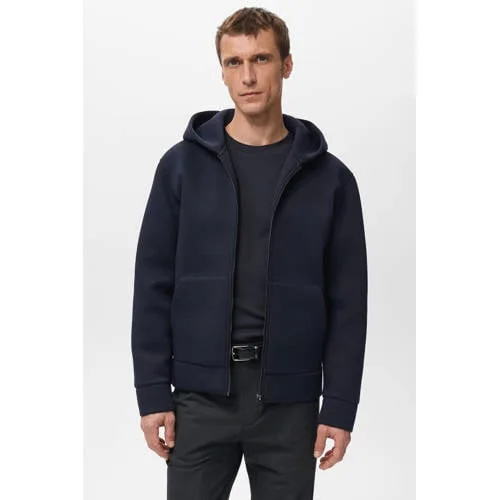 Dit Mango Man sweatvest heeft een ritssluiting en een capuchon. Dit vest is voor heren en heeft mouwen. Met de zakken berg je spullen op en de capuchon bedekt je hoofd.