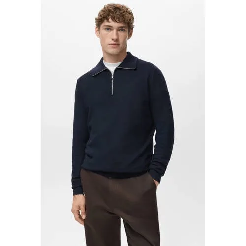 Deze Mango Man heren trui met halve rits is een fijne laag voor koele dagen in het voor en najaar. De trui heeft een rechtvallende pasvorm met lange mouwen en sluit comfortabel aan over een T shirt of overhemd. De mix van polyester en katoen voelt zacht aan op de huid en helpt de vorm mooi te houden, ook na vaak dragen. De opstaande kraag met halve rits geeft extra regulering van de warmte en zorgt voor een verzorgde uitstraling, of de rits nu hoger of iets meer geopend wordt gedragen.Verzorgde afwerking met doordachte details Rechtvallende pasvorm voor comfortabele bewegingsvrijheid Opstaande kraag met halve rits voor variatie in draagcomfort Gemaakt van 65 procent polyester en 35 procent katoen Fijn gebreid materiaal met een subtiele structuur Geribde boorden langs mouwen en onderzijde voor een verzorgde afwerking Effen kleur zonder zakken voor een rustige uitstralingRustige stijl voor uiteenlopende momentenMet de effen kleur en het ingetogen ontwerp is de trui geschikt voor werkdagen op kantoor, afspraken buiten de deur en ontspannen momenten thuis. De opstaande kraag biedt net wat extra warmte in de nek tijdens frisse ochtenden of avonden.Mango Man met oog voor vorm en comfortMango Man ontwikkelt moderne kleding met heldere lijnen en praktische details. In de collecties is veel aandacht voor draagcomfort, pasvorm en een eigentijdse stijl, zodat elk kledingstuk eenvoudig in de dagelijkse garderobe past.Een praktische trui die gedurende het seizoen zorgt voor een verzorgd en comfortabel gevoel.