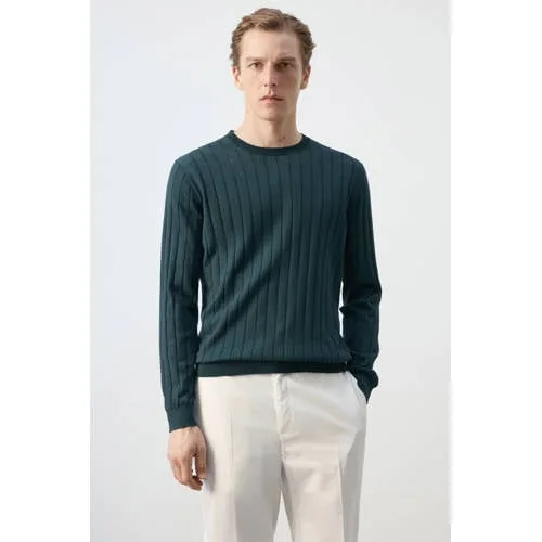 Deze middengroene gebreide heren trui van katoen van Mango Man is een basic voor elke dag in een rustige kleur. Het fijne breisel oogt verzorgd en voelt soepel aan, terwijl de effen kleur makkelijk te combineren is met je favoriete jeans of chino. Dankzij de regular fit valt de trui recht langs het lichaam, zonder te strak of te wijd te zijn.Kenmerken van deze gebreide trui Gemaakt van 100% katoen voor een zachte touch op de huid Fijn breisel voor een nette, gladde uitstraling Ronde hals die mooi aansluit en ruimte laat voor een T-shirt eronder Lange mouwen met comfortabele pasvorm Rechte zoom voor een rustige, moderne look Effen middengroene kleur die goed past bij neutrale en donkere tinten Zonder sluiting en zonder zakken voor een clean silhouet Regular fit, geschikt voor het standaard herenmaat assortimentVoor werk, weekend en alles ertusseninDeze trui is geschikt voor veel momenten. Draag hem naar kantoor op een chino en nette schoenen, of juist casual in het weekend met een spijkerbroek en sneakers. De middengroene kleur geeft net wat meer karakter dan basic zwart of grijs, maar blijft toch rustig.Mango Man: eigentijdse herenstijlMango Man richt zich op moderne herenmode met een toegankelijke stijl. De collecties combineren actuele trends met draagbare basics, zodat je eenvoudig een complete garderobe samenstelt. Met deze trui voeg je een vast basisitem toe aan je garderobe dat past bij een hedendaagse, verzorgde uitstraling.Een praktische trui die je het hele seizoen gemakkelijk combineert.