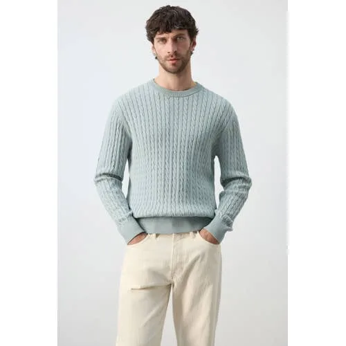 Deze katoenen kabeltrui voor heren van Mango Man is een praktische basic voor elke dag. De turkooizen kleur zorgt voor een frisse, moderne uitstraling, terwijl het klassieke kabelpatroon de trui een vertrouwde, stijlvolle look geeft. Gemaakt van 100% katoen voelt de stof zacht aan en is de trui geschikt om het hele jaar door te dragen. De kleur gebroken wit is exclusief online verkrijgbaar.Details die het verschil maken Gemaakt van 100% katoen, voor een zachte touch op de huid Kabelstof met ingebreid patroon voor een klassiek, gebreid effect Regular fit met standaardlengte voor een comfortabele, rechte pasvorm Ronde hals die mooi aansluit zonder strak te zitten Geribde boorden langs hals, manchetten en zoom voor een nette afwerking Effen kleur, eenvoudig te combineren met jeans, chino of pantalon Langemouwmodel zonder sluiting, makkelijk aan en uit te trekkenMakkelijk te combineren in elke outfitDeze trui past gemakkelijk in je dagelijkse garderobe. Draag hem casual met een jeans en sneakers of combineer met een chino voor een iets formelere stijl. Het ademende katoen maakt de trui geschikt om solo te dragen of over een T-shirt op koelere dagen.Mango Man stijlMango Man biedt moderne, draagbare mode met aandacht voor pasvorm en detail. De collectie combineert actuele trends met klassieke elementen, waardoor je items krijgt die je seizoen na seizoen kunt blijven dragen.Een kabeltrui die je eenvoudig steeds opnieuw kunt stylen voor verschillende momenten.