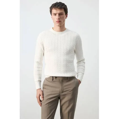 Deze katoenen kabeltrui voor heren van Mango Man is een rustige basic met een moderne twist. De kabelstof in naturel wit geeft een tijdloze uitstraling, terwijl de regular fit zorgt voor een ontspannen silhouet dat netjes oogt. De kleur gebroken wit is exclusief online verkrijgbaar, zodat je een specifieke uitvoering toevoegt aan jouw garderobe.Kabelstructuur in zacht katoen Gemaakt van 100% katoen, voelt zacht aan op de huid en is prettig om direct op een T-shirt te dragen Kabelstof met ingebreid patroon voor een karaktervolle, maar rustige look Regular fit met standaardlengte, ideaal voor dagelijks gebruik en makkelijk te combineren met jeans of chino Ronde hals die mooi aansluit en ruimte laat voor een overhemdkraag of T-shirt eronder Geribde boorden aan hals, manchetten en zoom voor een mooie vorm en een nette afwerking Effen naturel witte kleur die licht en fris oogt Lange mouwen voor extra warmte op koelere dagenVeelzijdig in elke casual outfitDeze trui past goed bij een donkere jeans voor een ontspannen weekendlook, of met een nette chino voor een meer geklede stijl. Draag er een basic T-shirt onder voor extra comfort, of combineer met een overhemd voor een iets formelere uitstraling.Mango Man: moderne herenstijlMango Man staat voor eigentijdse herenkleding met een heldere, draagbare stijl. De collecties combineren actuele trends met comfortabele pasvormen en materialen die geschikt zijn voor elke dag. Zo voeg je met deze trui eenvoudig een verzorgde, moderne basis toe aan je kledingkast.Een rustige, kabelgebreide trui die je het hele seizoen kunt blijven dragen.