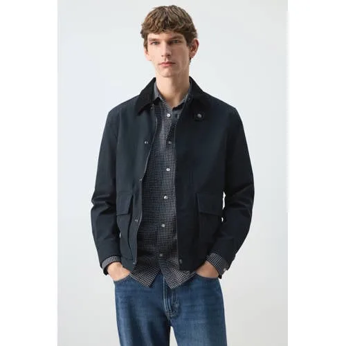 Deze Mango Man herenjas is een moderne tussenjas die makkelijk combineert met je dagelijkse looks. De jas heeft een regular fit en standaard lengte, waardoor de jas comfortabel valt over een trui of T-shirt. De waterafstotende afwerking helpt tegen lichte regen en zorgt dat regendruppels minder snel in de stof trekken, ideaal voor wisselvallige dagen.Functionele details in een tijdloze look Waterafstotende afwerking die bescherming biedt bij lichte regen Regular fit en standaard lengte voor een ontspannen, nette pasvorm Corduroy kraag met bandje en knoopsluiting voor een stoere, klassieke uitstraling Lange mouwen met knoopmanchetten voor een goed aansluitende mouwopening Twee opgestikte zakken met klep en drukknoop, plus een handige binnenzak Blinde rits- en drukknoopsluiting voor een rustig en verzorgd front Volledig gevoerd voor extra draagcomfort in het tussenseizoen Kleur: marine, een diepe donkerblauwe tint die overal bij pastIdeaal voor wisselvallig weerDeze tussenjas is geschikt voor zomerse dagen met een frisse wind of een onverwachte bui. De afsluitbare zakken houden sleutels en telefoon veilig, terwijl de gevoerde binnenkant net dat beetje extra warmte geeft tijdens frisse ochtenden of avondwandelingen.Mango Man: moderne stijl met aandacht voor detailMango Man staat bekend om kleding met een hedendaagse uitstraling en praktische details. Deze jas past in die lijn, met een ontwerp dat is afgestemd op dagelijks gebruik, van werk tot weekend. Je kiest voor een jas die er verzorgd uitziet en waarop je kunt vertrouwen in drukke, actieve dagen.Een veelzijdige donkerblauwe tussenjas die comfort en functionaliteit combineert in een rustige, tijdloze stijl.