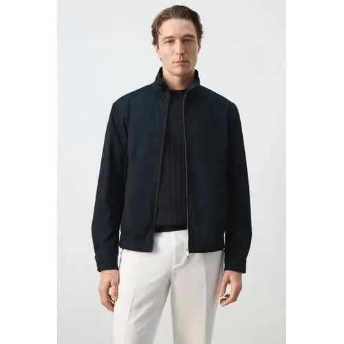 Deze marine heren zomerjas van katoen van Mango Man komt uit de Casper Ruud x Mango collectie en is een praktische basic voor frisse lentedagen en koele avonden in de zomer. Het korte model in effen donkerblauw geeft een rustige, moderne uitstraling, terwijl de opstaande kraag met knoopsluiting je net wat extra bescherming biedt tegen wind.Functionele details voor elke dag Gemaakt van 100% katoen, voelt stevig en toch soepel aan Opstaande kraag met knoopsluiting voor een gesloten hals Rits- en drukknoopsluiting zodat de jas goed dicht blijft Lange mouwen met knoopmanchetten voor een nette afwerking Twee zijzakken met bies voor je telefoon, sleutels of pasjes Praktische binnenzak voor waardevolle spullen Gladde binnenvoering, prettig over een T-shirt, polo of overhemd Kort model dat mooi valt op een jeans, chino of korte broekIdeaal voor lente en zomerDeze jas is ontwikkeld als zomerjas en sluit goed aan bij een moderne, sportieve stijl. Draag hem onderweg naar je werk, tijdens een citytrip of op een frisse avond op het terras. De marinekleur is makkelijk te combineren met basiskleuren als wit, grijs en beige.Mango Man: modern en verzorgdMango Man focust op eigentijdse kleding met een verzorgde uitstraling, passend bij een moderne levensstijl. In de samenwerking met toptennisser Casper Ruud komen sportieve invloeden en nette essentials samen in items die je het hele seizoen door blijft dragen.Een jas die je eenvoudig aantrekt en die je garderobe op een rustige, moderne manier compleet maakt.