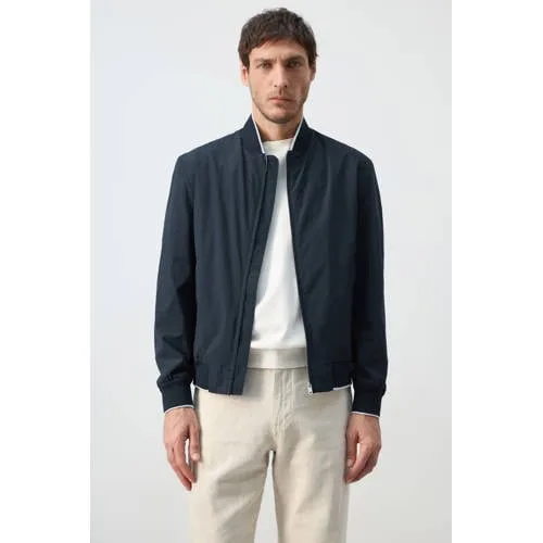 Ga droog en comfortabel de deur uit met deze marine heren tussenjas van Mango Man. De jas heeft een regular fit en valt kort op de heup, waardoor hij makkelijk combineert met je favoriete jeans of chino. De marine kleur oogt rustig en modern, ideaal voor dagelijks gebruik in de lente en zomer.Handige details voor elke dag Waterafstotende finish die beschermt tegen lichte regen en regendruppels afstoot Regular fit en korte lengte voor een moderne, rechtvallende pasvorm Opstaande kraag met contrasterende streep aan de binnenkant voor een sportieve touch Elastische hals, manchetten en zoom zodat de jas goed aansluit en warmte beter vasthoudt Ritssluiting over de volledige lengte voor snel aan- en uittrekken Twee zakken aan de voorkant met drukknopsluiting voor het veilig opbergen van kleine essentials Praktische binnenzak voor pasjes, telefoon of sleutels Volledig gevoerde binnenkant voor extra draagcomfortLichte jas voor lente en zomerDeze jas is ideaal voor wisselvallige lentedagen en frisse zomeravonden. Door het lichte materiaal en de waterafstotende laag is hij geschikt voor onderweg, tijdens een stadswandeling of op de fiets naar werk.Mango Man: moderne stijl voor elke dagMango Man staat bekend om eigentijdse modellen met een heldere, mannelijke lijn. De collecties combineren draagbare mode met doordachte details, zodat je voor elke dag en elke gelegenheid een passende look kunt samenstellen.Een praktische jas die comfort, bescherming tegen lichte regen en een moderne uitstraling samenbrengt.