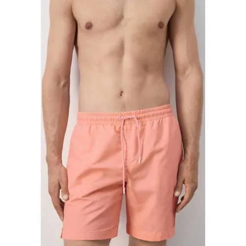 Ga zorgeloos het water in met deze Mango Man zwemshort voor heren in zalmroze. De korte pasvorm en het lichte materiaal geven veel bewegingsvrijheid, of je nu een paar baantjes trekt of met vrienden op het strand bent. De effen kleur oogt rustig en modern en laat zich makkelijk combineren met een T-shirt of linnen overhemd.Praktische details voor aan strand en zwembad Gemaakt van 100% polyamide, voelt licht aan en is snel weer droog Elastische tailleband met verstelbaar koord voor een aansluitende pasvorm Twee zijzakken en een achterzak met klittenband om kleine spullen bij je te dragen Meshvoering voor extra ondersteuning en comfort Kleine zijsplitjes aan de onderkant voor extra bewegingsvrijheid Handwas, niet strijken en niet in de droogtrommel drogen I.v.m. hygiëne dient badkleding gepast te worden over je eigen ondergoedComfortabel in en om het waterDeze zalmroze zwemshort is geschikt voor zowel het zwembad als het strand. De lichte stof en de meshvoering zorgen voor een prettig gevoel, ook als je weer uit het water bent. Door de praktische zakken heb je je sleutel of pasje toch dicht bij je wanneer je even niet zwemt.Mango Man: moderne stijl voor elke dagMango Man staat bekend om draagbare mode met een moderne uitstraling. De collectie combineert eigentijdse kleuren met handige details, zodat je er verzorgd uitziet en je prettig voelt in wat je draagt, ook aan het water.Een veelzijdige zwemshort die je zomerse garderobe op een rustige en moderne manier aanvult.