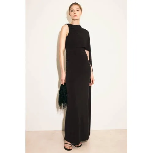Deze lange donkerbruine avondjurk voor dames van Mango combineert een elegante lengte met een moderne, asymmetrische belijning. De diepe, warme kleur en de vloeiende stof zorgen voor een rustige en verzorgde uitstraling die goed past bij zomerse gelegenheden. Door de getailleerde pasvorm volgt de jurk subtiel de vormen van je lichaam, terwijl het materiaal met lichte stretch soepel met je meebeweegt.Verfijnde details rondom hals en schouders Asymmetrisch ontwerp voor een moderne en opvallende belijning Sjaalkraag met capedetail bij de kraag voor een duidelijk accent rond de hals Mouwloos model, ideaal voor zomerse dagen en avonden Gerimpelde details die extra nadruk leggen op de taille Lang ontwerp dat dicht langs het lichaam valt Zonder sluiting, je trekt de jurk eenvoudig over het hoofd aan Effen kleur, makkelijk te combineren met sieraden en hakken Zonder zakken, waardoor de lijnen van de jurk strak blijvenVoor feestelijke momenten in de zomerDeze maxi jurk komt goed tot zijn recht bij een zomerse bruiloft als gast, een feestelijke avond of een diner. Een paar hakken, een kleine clutch en sieraden erbij en je outfit staat in één keer. Door de comfortabele stretch kun je de jurk uren achter elkaar dragen.Mango: modieuze stijl voor elke dagMango staat bekend om modieuze kleding met een toegankelijke uitstraling. De collecties sluiten aan op de trends van nu en zijn tegelijk goed draagbaar in het dagelijks leven. Met deze jurk kies je voor een model dat zowel bij een speciale gelegenheid als bij een etentje passend is.Een passende keuze als je op zoek bent naar een lange, feestelijke jurk met een moderne belijning.