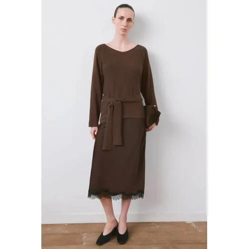 Deze Mango pullover jurk van katoen is een zachte basic voor elke dag, met een vrouwelijke vorm die toch relaxed aanvoelt. De jurk is gemaakt van 100% katoen met een middengrof breisel, waardoor het materiaal soepel valt en fijn aanvoelt op de huid, ook op mildere lentedagen. De effen bruine kleur geeft een rustige uitstraling en laat zich makkelijk combineren met jouw favoriete schoenen en accessoires.V-halsjurk met ceintuur in warm bruin Gemaakt van 100% katoen, voor een zachte en ademende feel op de huid Middengrof breisel dat mooi aansluit zonder strak te zitten Recht ontwerp dat met de ceintuur naar wens getailleerd kan worden V-hals voor een open, vrouwelijke halslijn Lange, rechte mouwen voor extra comfort en bedekking Midi-lengte die rond de knie valt, geschikt voor werk en vrije tijd Riemlussen met ceintuurdetail in de taille voor een verzorgd silhouet Zonder sluiting, je trekt de jurk eenvoudig over het hoofd aanComfortabel voor elke dagDeze midi jurk uit de 'Daily' collectie past goed in een drukke week. Draag de ceintuur strak voor een meer geklede look of iets losser voor een ontspannen dag. Met enkellaarsjes, gympen of loafers maak je de outfit eenvoudig passend bij het moment.Mango als stijlvolle basis in je garderobeMango ontwerpt moderne kleding met een toegankelijke stijl. De collecties sluiten aan bij het dagelijks leven, met aandacht voor pasvorm en details. Zo voeg je met deze pullover jurk een praktische keuze toe aan je garderobe.Een bruine midi jurk die geschikt is voor een groot deel van het seizoen wanneer je iets makkelijks en verzorgd wilt dragen.