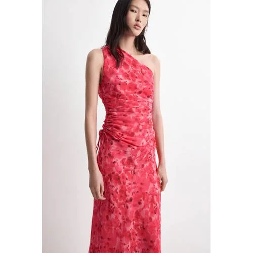Mango midi one shoulder jurk met bloemenprint rood