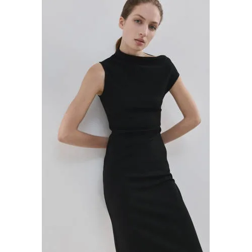 Deze Mango off shoulder jurk is geschikt voor momenten waarop je je net wat verzorgder wilt kleden, zonder dat het ingewikkeld hoeft te zijn. Het midi ontwerp valt op door de asymmetrische halslijn en de enkele mouw, wat zorgt voor een slank silhouet met een opvallend detail. De getailleerde pasvorm accentueert de taille en volgt soepel de lijnen van het lichaam.Details die het verschil maken Midi lengte voor een rustige en tijdloze uitstraling Asymmetrische halslijn met off shoulder kraagvorm voor een moderne look Een korte, rechte mouw die het ontwerp een duidelijk asymmetrisch effect geeft Getailleerd ontwerp dat de taille subtiel benadrukt Effen kleur, makkelijk te combineren met verschillende schoenen en accessoires Gemaakt van polyester, een vormvaste stof die glad langs het lichaam valt Geen sluiting voor een gladde, minimalistische afwerking Zonder zakken, waardoor de lijn van de jurk rustig en strak blijftVoor avondjes uit en bijzondere momentenDeze off shoulder jurk is geschikt voor diners, borrels of feestjes. De midi lengte en het effen ontwerp maken het eenvoudig om de jurk aan te passen aan de gelegenheid, bijvoorbeeld met hakken en een compacte tas voor een meer geklede uitstraling.Mango met een heldere signatuurMango staat voor collecties die trends combineren met draagbare ontwerpen. De stijl voelt actueel, maar blijft tegelijkertijd toegankelijk in vorm en uitstraling. Met deze jurk haal je een item in huis dat eenvoudig in te passen is in een moderne garderobe.Een basisjurk die geschikt is voor uiteenlopende gelegenheden.