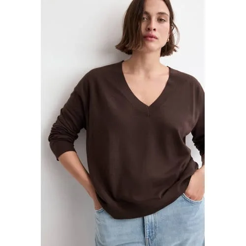 Voor een zachte laag die je elke dag weer uit de kast pakt, is deze Mango dames trui met V-hals een toegankelijke basic met een moderne uitstraling. De trui heeft een fijn breisel, rechte pasvorm en een vrouwelijke V-hals. De bruine kleur geeft direct warmte aan je outfit en laat zich makkelijk combineren met je favoriete broeken en rokken.Verzorgd design voor elke dag Gemaakt van 40% viscose en 30% polyamide, gecombineerd met een soepele stof die prettig aanvoelt op de huid Fijn breisel dat licht draagt, ideaal voor het lente seizoen of als laagje binnen Recht ontwerp met rechte mouwen voor een ontspannen, maar nette look V-hals die je halslijn mooi laat zien en ruimte biedt voor een ketting Korte lengte, staat goed boven een high waist jeans, pantalon of rok Effen bruine kleur die rust uitstraalt en makkelijk te stylen is Zonder sluiting, zodat je de trui snel aantrekt en klaar bent om te gaan Beschikbaar in standaardmaten en plus, zodat meer vrouwen de pasvorm kunnen dragenComfortabel in je dagelijkse routineDeze trui past goed in een dagelijkse garderobe. Combineer met een straight jeans en sneakers voor een casual dag, of draag een pantalon en loafers voor een meer verzorgde look. In de lente is de trui licht genoeg om solo te dragen, op koelere dagen schuif je er eenvoudig een top onder.Mango's kijk op moderne modeMango staat bekend om mode die trends volgt, maar tegelijk draagbaar blijft voor elke dag. De collecties worden ontworpen met aandacht voor pasvorm en tijdloze lijnen, zodat je de items lang in je kast houdt. Met deze trui haal je een stijlvol en betrouwbaar basisstuk van een internationaal vertrouwd modemerk in huis.Een veelzijdige bruine trui die moeiteloos meebeweegt met je drukke dagen en wisselende plannen.