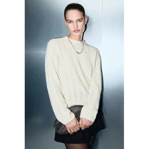 Design: Geribbelde kraag, Rechte zoom, Geribd ceintuurtje; Materiaal: Knitwear; Halstype: Opstaande kraag; Motief: Effen; Details: Mesh; Extra's: Glitterend, Visnet brei, Fully fashioned, Met textuur, Voelt zacht aan; Pasvorm: Losse pasvorm; Armlengte: Lange mouw; Lengte: Normale lengte