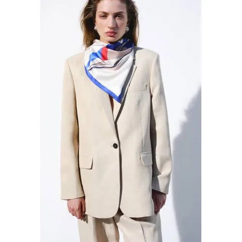 Deze beige dames blazer van Mango is een veelzijdige klassieker voor je garderobe. De rechte snit en het ingetogen design maken het een blazer die je makkelijk combineert, van werkdag tot diner. De effen beige kleur zorgt voor een rustige, verzorgde uitstraling en past mooi bij zachte tinten, denim en donkere basics.Verzorgde details in een linnenmix Linnenmix stof met viscose voor een luchtig en soepel gevoel, ideaal voor het lente seizoen Rechte snit met lange, rechte mouwen voor een moderne, ontspannen look V-hals met ingesneden reverskraag voor een nette, tijdloze uitstraling Borstzak met bies en twee sierklepzakken aan de voorkant Voorsluiting met knopen, zodat de blazer zowel open als gesloten mooi valt Volledig gevoerd met een gladde voering van 100% viscose voor extra draagcomfort Kraag met toevoeging van wol voor een mooie vorm en luxe uitstraling Onderdeel van de Mango Selection collectie en geschikt als daily essentialEenvoudig te stylen in je dagelijkse looksDraag de blazer over een basic T-shirt met een jeans voor een casual look of combineer met een nette broek voor een meer geklede outfit. De rechte pasvorm laat zich makkelijk over verschillende tops dragen en vormt een fijne laag op koelere dagen.Mango: moderne mode met oog voor detailMango staat bekend om eigentijdse mode met een heldere, vrouwelijke stijl. De collecties zijn ontworpen met aandacht voor pasvorm, draagbaarheid en subtiele details. Zo voeg je met elke Mango blazer een betrouwbaar en stijlvol kledingstuk toe aan je kast, waar je seizoen na seizoen plezier van hebt.Een rustige, stijlvolle basislaag die veel verschillende outfits compleet maakt.