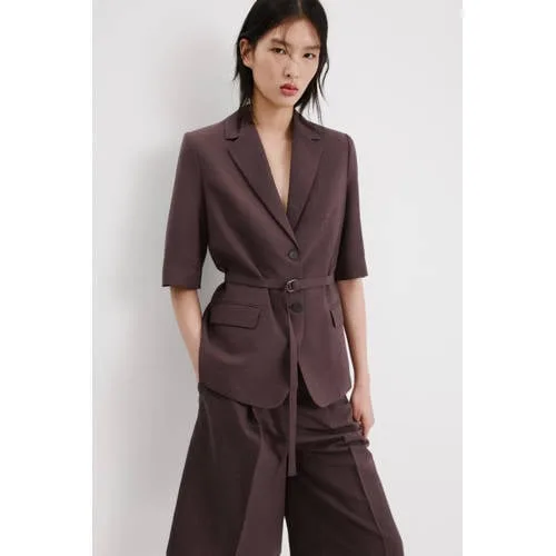 Deze donkerpaarse blazer voor dames van Mango is een sterke basis voor je garderobe. De blazer heeft een rechte snit en een elegante V-hals met revers, waardoor hij zowel bij een nette broek als bij een jeans goed uitkomt. De linnenmix stof voelt luchtig aan en geeft een ontspannen, maar verzorgde uitstraling, ideaal voor lentedagen en lange avonden.Verzorgde details in een linnenmix Gemaakt van een linnenmix met 62% VISCOSE en 38% LINNEN voor een soepele, licht luchtige touch Rechte mouwen en regular pasvorm voor een tijdloos silhouet V-hals met ingesneden revers en voorste knoopsluiting voor een klassieke blazerlook Twee klepzakken als sierzakken voor een rustige, nette voorkant Riemdetail in de taille waarmee je de blazer naar wens licht kunt tailleren Volledige voering voor een gladde binnenkant en prettig draagcomfort Effen donkerpaarse kleur die makkelijk combineert met zwart, ecru of denimVan werkdag tot feestelijk momentDeze blazer komt uit de Daily collectie en past goed bij je dagelijkse looks. In combinatie met een top en een rechte broek is hij geschikt voor kantoor, met een satijnen camisole en hakken maak je er in een paar seconden een feestelijke outfit van. De riem in de taille geeft je de keuze tussen een losvallend of meer gedefinieerd silhouet.Mango: moderne stijl voor elke dagMango staat bekend om modieuze collecties met een duidelijke, eigentijdse stijl. De focus ligt op draagbare ontwerpen die makkelijk te combineren zijn, met aandacht voor pasvorm en details. Deze blazer sluit daar naadloos op aan en biedt je een betrouwbaar item waar je veel kanten mee op kunt.Een donkerpaarse blazer die je outfits rustig, stijlvol en doordacht laat aanvoelen.
