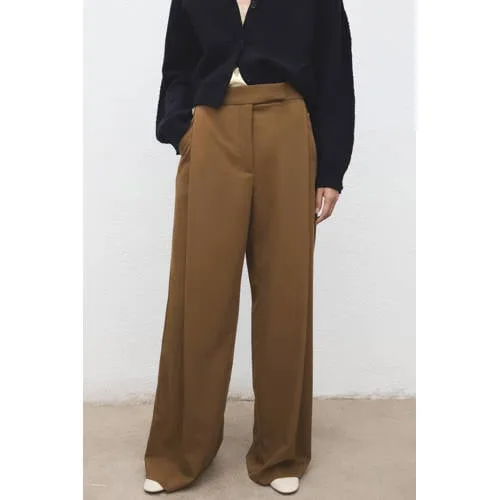 Deze langvallende Mango wide leg damesbroek in bruin is een praktische basis in je garderobe. De broek heeft een hoge taille en een wijde pijp, waardoor de pasvorm los om je benen valt. Dankzij de nette plooi aan de voorkant en de verzorgde afwerking is deze broek geschikt voor zowel werk als een etentje. De zachte voering voelt prettig aan en zorgt ervoor dat de stof mooi blijft vallen.Details die het verschil maken Lang ontwerp met wide leg pijpen voor een elegante, losse fit Hoge taille met regular waist pasvorm voor een mooi aangesloten silhouet Plooidetail aan de voorkant voor een verzorgde, geklede look Twee praktische zijzakken en een paspelzak aan de achterkant Blinde rits-, haak- en knoopsluiting voor een strak en rustig vooraanzicht Gemaakt van 78% polyester, 18% viscose en 4% elastomeer voor soepel draagcomfort Volledig gevoerd met 100% polyester, taillevoering van 80% polyester In een warme bruine kleur, makkelijk te combineren met neutrale en lichte tintenVoor kantoor, diner of vrije dagDeze broek combineert het gemak van een losse pasvorm met de uitstraling van een nette pantalon. Met een blouse en hakken is de look meteen geschikt voor kantoor. In combinatie met een top en sneakers ontstaat een ontspannen, maar verzorgde outfit voor een vrije dag.Mango: moderne stijl met aandacht voor detailMango staat bekend om modieuze collecties met een toegankelijke, eigentijdse uitstraling. De focus ligt op nette afwerking, draagbare pasvormen en ontwerpen die je eenvoudig combineert met wat je al in de kast hebt.Een broek met een comfortabele pasvorm en veelzijdige stylingmogelijkheden die je outfits een verzorgde uitstraling geeft.