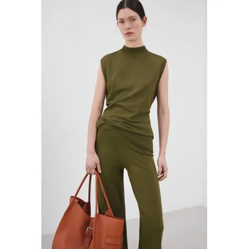 Voor een ontspannen maar verzorgde look is deze groene Mango pantalon een praktische basis in je garderobe. Het lange, rechte model valt soepel langs het been en heeft een middelhoge taille, waardoor de broek comfortabel zit en netjes oogt. Het fijne breisel met viscose voelt zacht aan op de huid en beweegt soepel met je mee, geschikt voor drukke dagen waarop je veel onderweg bent.Comfortabel breisel met nette uitstraling Fijn gebreide stof met viscose voor een zachte, soepele touch Rechte snit en lang ontwerp voor een rustige lijn langs het been Middelhoge taille die mooi aansluit zonder strak te voelen Elastische tailleband, eenvoudig aan en uit te trekken, geen sluiting Geen zakken voor een gladde, clean look Effen groene kleur, goed te combineren met tops en truien Geschikt als total look in combinatie met de bijpassende top Ook beschikbaar in Plus maten, zodat je dezelfde stijl in meer maten vindtIdeaal voor alledaagse outfitsDeze broek past goed bij je daily wardrobe. Draag de pantalon met een eenvoudig T-shirt en sneakers voor een ontspannen dag, of met een fijngebreide trui in dezelfde tint voor een co-ord set die meteen klaar is om te dragen.Mango: moderne stijl voor elke dagMango staat voor eigentijdse mode met een heldere stijl. De collecties zijn geïnspireerd op trends uit de stad en combineren draagbare ontwerpen met nette afwerking. Zo vul je jouw kast met items waar je elke dag opnieuw naar grijpt.Een zachte, rechte broek waarin je je de hele dag gemakkelijk beweegt en die er tegelijk verzorgd uitziet.