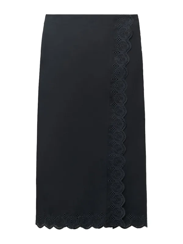 Design: Beenopening, Geschulpte zoom; Type sluiting: Ritssluiting; Materiaal: Katoen; Motief: Effen; Rokvorm: A-lijn rok; Details: Borduursels, Mesh; Extra's: Op staal naden, Voelt zacht aan; Lengte: 3/4 lengte; Pasvorm: Normale pasvorm