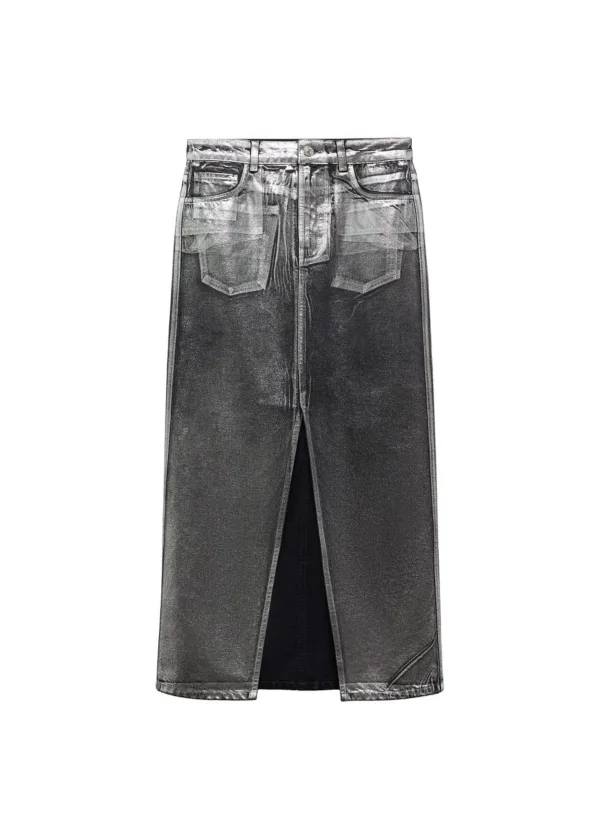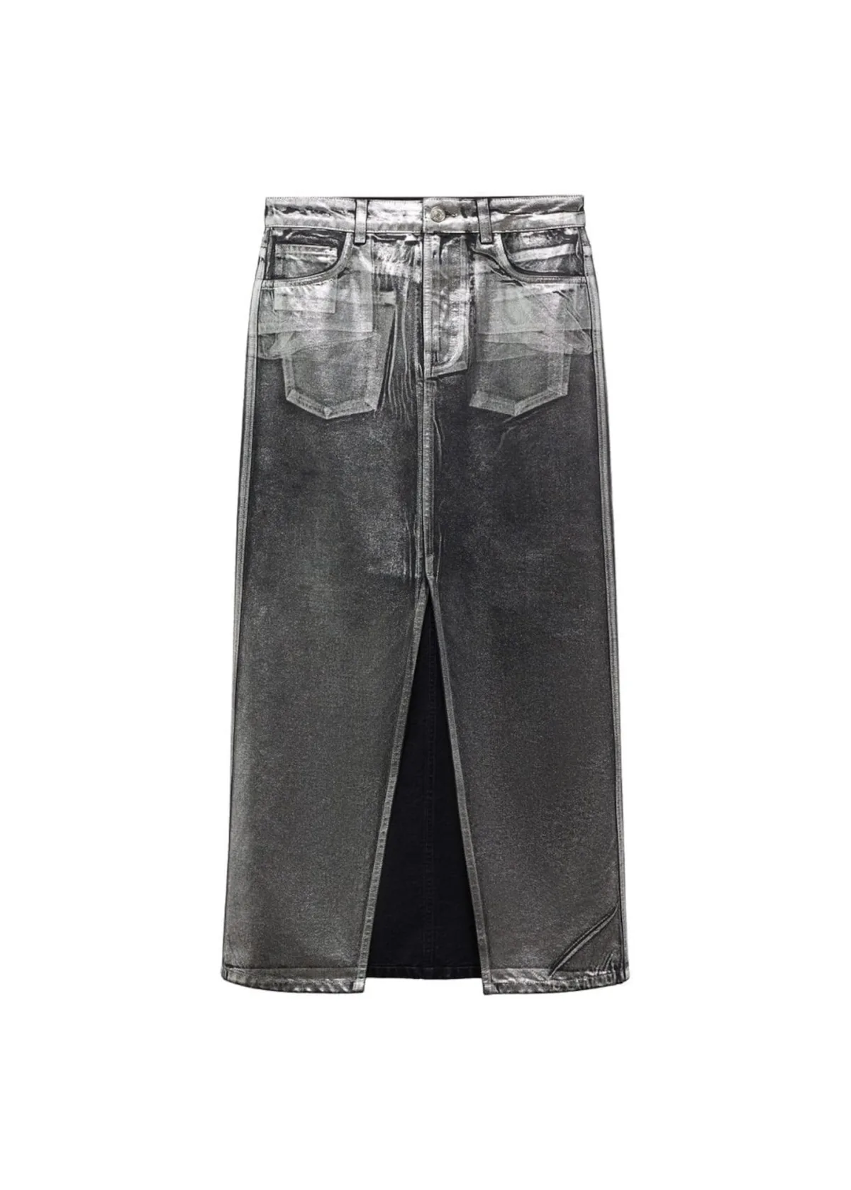 Specificaties: MANGO Rok ‘Shimmer’ zilvergrijs / black denim