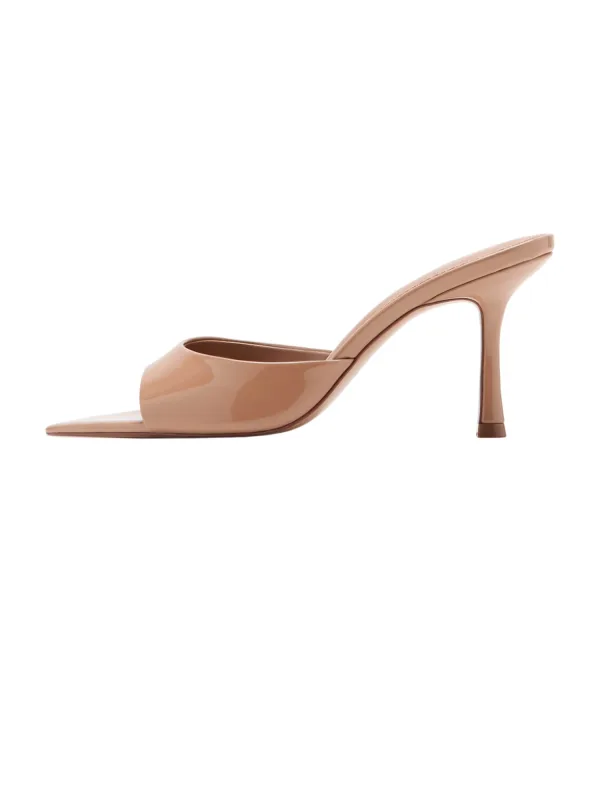 Deze Mango mules hebben een slingback ontwerp. De punt en naaldhak horen bij het ontwerp van Mango. De buitenkant heeft een lakleereffect en aan de voorkant zit een opening. Je draagt dan een open schoen. De hak is 8 cm hoog.