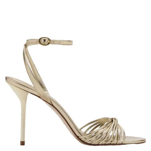 Met deze Mango sandalette met naaldhak in goudkleur geef je elke outfit direct een chique accent. De elegante bandjes, open teen en smalle hak van 10 cm zorgen voor een verfijnde uitstraling, terwijl de gespsluiting rond de enkel alles mooi op zijn plek houdt. Ideaal voor feestelijke gelegenheden waarbij je net wat meer wilt uitpakken, zonder in te leveren op draaggemak.Verfijnde details voor een feestelijke look Goudkleurige sandalette met effen design, goed te combineren met jurken en jumpsuits Smalle naaldhak van 10 cm voor een elegante, vrouwelijke houding Bandjes over de wreef en rond de enkel zorgen voor een stabiel gevoel Gespsluiting bij de enkel voor een verstelbare pasvorm Normale leest, geschikt voor de meeste voetvormen Buitenkant, voering en binnenzool van imitatieleer voor een gladde, strakke look Rubberen zool voor grip op gladde vloerenPerfect voor bruiloften en avondinvitesDeze sandalette komt goed tot zijn recht bij gelegenheden zoals een bruiloft, een diner of een feest. De goudkleur laat zich makkelijk combineren met zachte pasteltinten, zwart of wit. Door het open model en de slanke hak oogt je enkel mooi verfijnd, wat vooral bij midi en maxi jurken een stijlvol effect geeft.Stijl volgens MangoMango staat bekend om mode die eigentijds en toegankelijk is. De schoenencollectie sluit aan bij dagelijkse outfits, maar biedt ook genoeg keuze voor speciale momenten. Met deze sandalette kies je voor een model dat past binnen die filosofie, met aandacht voor uitstraling en detail.Een stijlvolle keuze wanneer je je look op een subtiele maar opvallende manier wilt versterken.