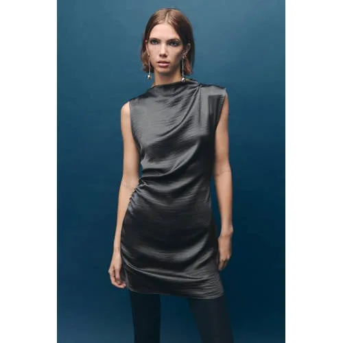Mango satijnen cocktailjurk antraciet