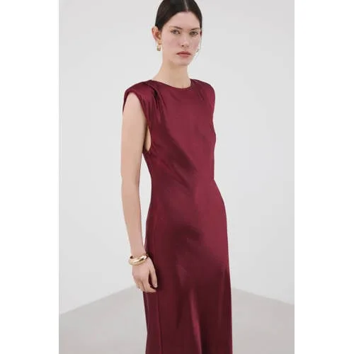 Voor een moderne stijl kies je deze Mango satijnen midi jurk in donkerrood. Het midi ontwerp valt rond de knie en volgt subtiel je silhouet dankzij de getailleerde pasvorm. De gladde satijnstof heeft een lichte glans, waardoor de jurk een verzorgde uitstraling krijgt, passend bij zowel een etentje als een avondje uit.Verfijnde details in satijn Satijnstof met lichte glans voor een verzorgde uitstraling Midi lengte die net onder de knie valt Getailleerd ontwerp dat het silhouet volgt Aansluitende ronde hals voor een subtiele halslijn Mouwloos model met brede bandjes en lichte kapvorm over de schouders Rits- en knoopsluiting aan de achterkant voor een nette afwerking Gevoerde binnenkant voor extra draagcomfort en een soepele stofval Kleur donkerrood exclusief online verkrijgbaarIdeaal voor avond en speciale momentenDeze donkerrode midi jurk past goed bij gelegenheden waarbij je net iets gekleder wilt verschijnen. Met hakken, een compacte schoudertas en subtiele sieraden ontstaat eenvoudig een complete avondlook. De effen kleur maakt het combineren makkelijk, terwijl de glanzende stof het geheel iets meer laat opvallen.Mango, eigentijdse mode met aandacht voor detailMango staat bekend om moderne collecties waarin trends en draagbaarheid samenkomen. De ontwerpen zijn doordacht, met aandacht voor pasvorm en afwerking, zodat de stukken prettig dragen, de hele dag door. Deze jurk sluit daar op aan, met een stijl die moeiteloos meebeweegt van dag naar avond.Een jurk die klaarstaat voor momenten waarop je net iets gekleders wilt aantrekken, zonder dat het ingewikkeld hoeft te zijn.