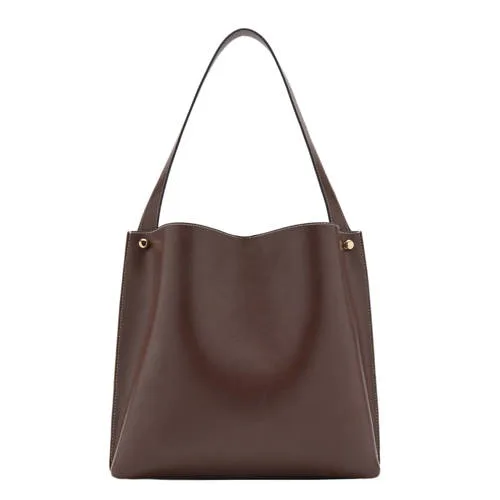 Deze bruine Mango schoudertas van imitatieleer is een praktische basic voor elke dag. De tas heeft een modern zakmodel en valt soepel langs je lichaam. Door de combinatie van schouderriem, georganiseerde binnenkant en subtiele metalen details is dit een tas die je gemakkelijk meeneemt naar werk, stad of een lunchafspraak.Overzichtelijke indeling en handige details Zakmodel dat comfortabel langs je heup valt Verstelbare schouderriem voor draaggemak Dubbel vak binnenin, zodat telefoon, sleutels en portemonnee elk een eigen plek hebben Binnenzak met ritssluiting voor kleine essentials die je extra veilig wilt opbergen Volledig gevoerde binnenkant die je spullen netjes beschermt Stevige karabijnsluiting in combinatie met haaksluiting voor een veilige afsluiting Subtiele metalen knopen als stijlvol accent Effen bruine kleur die eenvoudig te combineren is met verschillende outfitsVoor werk, boodschappen en alles daar tusseninDeze schoudertas en shopper in één biedt genoeg ruimte voor je dagelijkse spullen, zonder onhandig groot te worden. Ideaal voor een drukke dag waarin je van kantoor naar school, stad of sportschool gaat. Door de georganiseerde vakken heb je snel overzicht en hoef je nooit lang te zoeken.Mango: eigentijdse stijl met aandacht voor detailsMango staat bekend om moderne collecties met een frisse, vrouwelijke uitstraling. De aandacht voor vorm, kleur en praktische details zie je duidelijk terug in deze tas. Je kiest voor een accessoire dat aansluit bij de trends, maar ook seizoen na seizoen goed te gebruiken blijft.Een stijlvolle en functionele tas die je dagelijkse routine net even makkelijker en georganiseerder maakt.