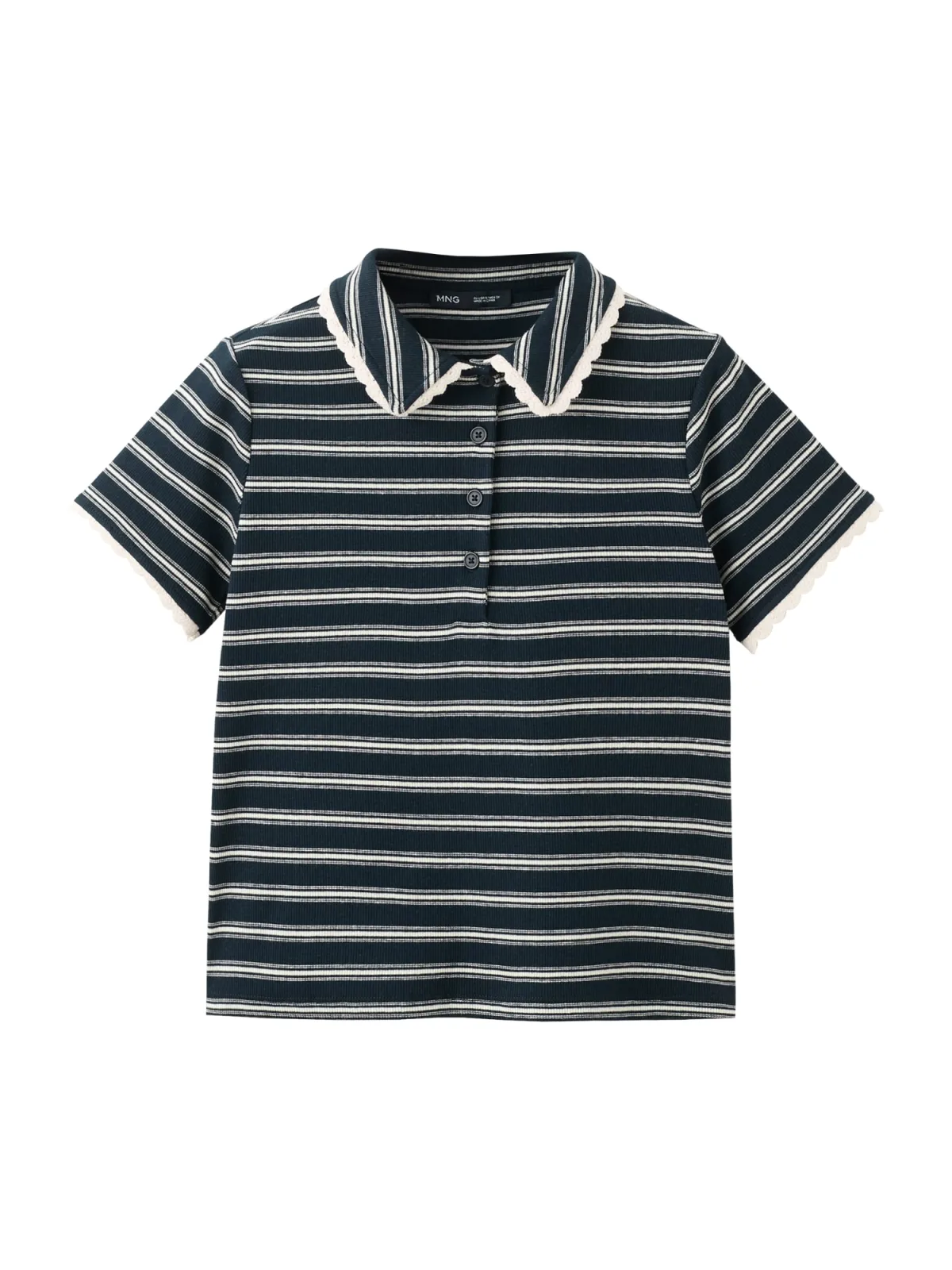 Design: Gevoerde zoom/rand, Rechte zoom, Zoom/rand met boord; Type sluiting: Knoopsluiting; Materiaal: Jersey; Halstype: Polokraag; Motief: Gestreept; Details: Kant; Extra's: All-over patroon, Met textuur; Pasvorm: Normale pasvorm; Armlengte: Kwartmouw; Lengte: Normale lengte