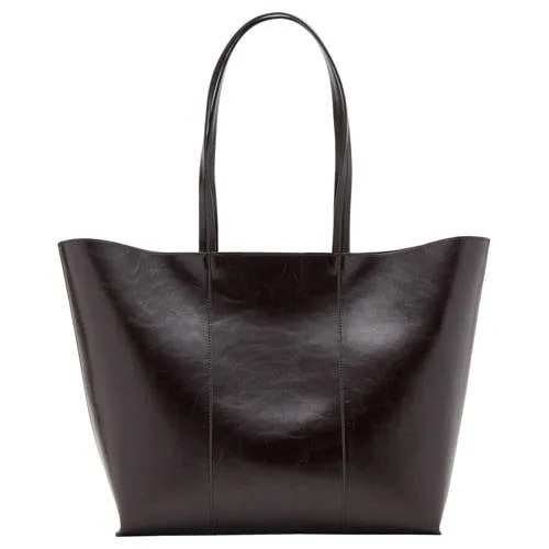 Voor werk, boodschappen of een dagje stad, deze Mango handtas in shopper stijl geeft je moeiteloos extra ruimte. De tas heeft een groot formaat en een tijdloze donkerbruine kleur, waardoor je al je dagelijkse essentials makkelijk meeneemt en toch een rustige, verzorgde look houdt.Ruime shopper voor elke dag Groot formaat shopper met afmetingen van 50x31x14 cm, ideaal voor laptop, documenten en extra spullen Effen donkerbruine kleur die goed combineert met zowel casual als meer geklede outfits Twee stevige schouderhengsels, zodat de tas comfortabel over de schouder gedragen kan worden Magnetische knoopsluiting zodat de tas snel en eenvoudig opent en sluit Gemaakt van imitatieleer met een gladde touch voor een nette en moderne uitstraling Onopvallende afwerking zonder opvallende hardware voor een rustige, minimalistische lookHandige tas voor werk en dagelijkse plannenDeze shopper uit de Daily collectie is ontworpen voor dagen waarop je veel bij je hebt. Er past gemakkelijk een grote portemonnee, make-up etui, waterfles en een kleine laptop of tablet in. De vaste schouderhengsels geven een stabiel draaggevoel, of je nu snel de stad in gaat of naar kantoor loopt.Stijl volgens MangoMango staat bekend om moderne ontwerpen met een toegankelijke uitstraling. De collecties sluiten aan op de laatste trends, maar blijven draagbaar voor alledaagse momenten. Met deze tas kies je voor een praktische shopper die past bij een garderobe die zowel modieus als functioneel is.Een ruime, donkerbruine shopper die je dagelijkse routine overzichtelijk en verzorgd houdt.