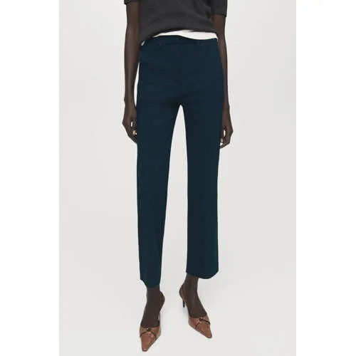 Deze Mango damesbroek slim fit marine is een verfijnde basis voor verschillende momenten in de week. De lange broek heeft een hoge taille die dicht langs de heupen valt en een smalle pijp die het lichaam volgt. De effen marine kleur combineert goed met zowel lichte als donkere bovenstukken. De stof is gemaakt van viscose, polyamide en elastomeer waardoor de broek soepel draagt en de pasvorm goed behouden blijft.Verzorgde afwerking voor dagelijks gebruik Hoge taille voor een aansluitend en gestroomlijnd silhouet Slim fit model met lange pijpen Effen marine kleur die eenvoudig te combineren is Rits met haak en knoopsluiting aan de voorkant Praktische zakken voor en achter plus sierzakken voor een nette uitstraling Voering van polyester en katoen voor extra draagcomfortMakkelijk te stylen door de week heenMet deze broek ga je soepel van een drukke dag naar een rustig moment. Draag de broek met een blouse voor een verzorgde uitstraling op kantoor of met een trui voor een ontspannen look, terwijl de hoge taille en slim fit telkens voor een nette basis zorgen.Mango als eigentijdse keuzeMango brengt moderne collecties met aandacht voor pasvorm en afwerking. Het merk ontwerpt kleding die past bij een huidige levensstijl, met modellen die stijl en comfort combineren in toegankelijke items voor elke dag.Een veelzijdige broek die keer op keer een verzorgde basis vormt voor je outfit.