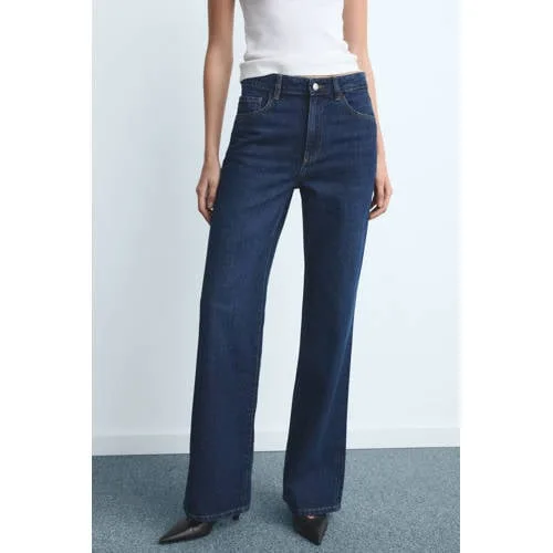Ga voor een tijdloze denimlook met deze donkerblauwe Mango straight leg jeans. Het lange ontwerp met wijde, rechte pijpen valt soepel langs het been en creëert een ontspannen silhouet. De effen dark blue denim kleur maakt deze jeans makkelijk te combineren met al je favoriete tops, van T-shirt tot blazer. Dankzij de hoge taille sluit de broek mooi aan rond je middel en zorgt de rits- en knoopsluiting aan de voorkant voor een klassieke afwerking.Details die je elke dag draagt Gemaakt van 100% katoen in een stevige denim-stijl stof Lang model met wide leg ontwerp voor een recht en ruim vallend been Hoge taille met riemlussen voor extra stylingopties met je favoriete ceintuur Klassieke vijfpocket styling met twee achterzakken, twee voorzakken en een muntzakje Rits- en knoopsluiting aan de voorkant voor een vertrouwde pasvorm Binnenlengte van 84,5 cm, ideaal voor een elegante, langere look Verkrijgbaar in plusmaten, zodat dezelfde stijl bij verschillende lichaamstypes pastDonkerblauwe denim voor elke dagDe donkerblauwe kleur maakt deze jeans geschikt voor zowel casual als meer geklede momenten. Combineer met sneakers voor een relaxte dag of met laarsjes voor een wat gekledere uitstraling. De rechte, wijde pijp geeft voldoende ruimte rond het been en zorgt voor bewegingsvrijheid in je dagelijkse routine.Mango, moderne mode voor nuMango staat bekend om eigentijdse collecties die aansluiten bij het dagelijks leven. Het merk koppelt actuele trends aan draagbare ontwerpen, met aandacht voor pasvorm en materiaal. Zo creëer je eenvoudig een garderobe waarin je graag grijpt naar je favoriete basics en denimstukken.Een betrouwbare basisjeans in donkerblauw denim die je garderobe rustig en compleet maakt.