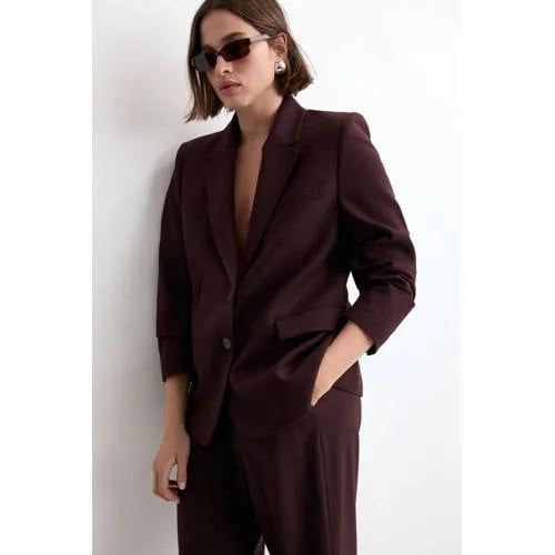 Voor een verzorgde look op kantoor of tijdens een etentje is deze donkerrode damespantalon van Mango een praktische basis. De broek heeft een lang, recht ontwerp met middelhoge taille en valt soepel langs het been. De licht elastische stof sluit goed aan zonder te strak te zitten, waardoor je je de hele dag vrij kunt bewegen. De diepe donkerrode kleur geeft elke outfit direct een rustige, verzorgde uitstraling.Verfijnde details voor elke dag Lang, recht model dat het silhouet optisch verlengt Middelhoge taille met riemlussen voor extra stylingopties Licht elastisch materiaal voor meer bewegingsvrijheid Twee zijzakken en een blinde knoop, haak- en ritssluiting voor een nette afwerking Gevoerde binnenkant met zachte touch voor extra draagcomfort Geschikt voor standaardmaten en beschikbaar in grotere maten Effen donkerrode kleur die makkelijk combineert met blouses, tops en blazersVan werkdag tot dinerDeze pantalon past goed in je dagelijkse garderobe. Combineer de broek overdag met een blouse en loafers voor een nette werklook. Wissel in de avond je bovenkant om voor een top en hakken, dan ben je klaar voor een etentje of borrel. Dankzij het rechte model en de diepe kleur is de broek makkelijk te stylen voor verschillende gelegenheden.Mango: moderne stijl met oog voor pasvormMango staat bekend om collecties volgens de laatste trends met een toegankelijke uitstraling. De pasvormen zijn ontworpen voor dagelijks gebruik, met aandacht voor zowel standaardmaten als grotere maten. Zo vind je bij Mango items die je eenvoudig combineert en die je garderobe op een praktische en stijlvolle manier aanvullen.Een donkerrode pantalon die je vaak uit de kast pakt voor een verzorgde en eigentijdse look.