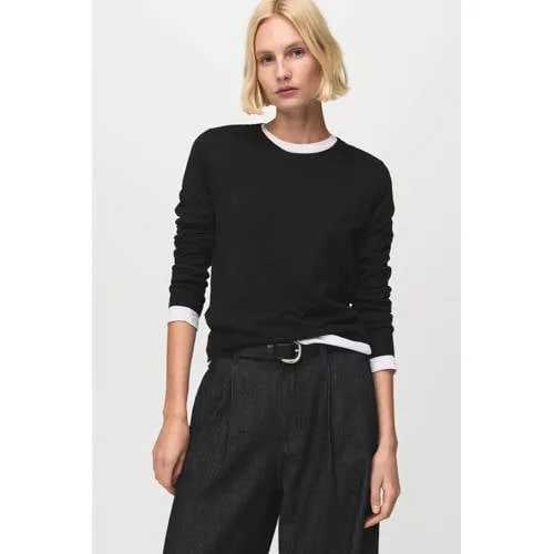 Deze Mango dames trui vormt een rustige basis voor uiteenlopende outfits. De trui heeft een ronde hals en lange rechte mouwen voor een klassieke uitstraling. Dankzij de mix van viscose, polyester en polyamide voelt de stof soepel aan op de huid en volgt de trui gemakkelijk je bewegingen. Het effen ontwerp laat zich eenvoudig combineren met een jeans, een nette broek of een rok voor verschillende gelegenheden.Verzorgde details voor elke dag Lange rechte mouwen voor volledige bedekking van de armen Ronde hals die netjes langs de halslijn valt Effen kleur die goed te combineren is met diverse stijlen Gemaakt van 40 procent viscose, 30 procent polyester en 30 procent polyamide Geen zakken voor een rustig en gestroomlijnd silhouetGeschikt van kantoor tot vrije tijdMet deze trui stel je eenvoudig een verzorgde outfit samen voor werk, een etentje of een ontspannen dag thuis. De soepele stof draagt prettig in meerdere seizoenen en past goed onder een blazer of jas zonder extra volume te geven.Eigentijdse stijl van MangoMango staat voor moderne collecties met een heldere pasvorm en aandacht voor draagcomfort. De truien worden ontworpen met oog voor detail, zodat pasvorm en afwerking aansluiten op dagelijks gebruik. Daarmee is dit een betrouwbare keuze voor wie houdt van een toegankelijke en actuele stijl.Een veelzijdige trui die gemakkelijk aansluit bij jouw dagelijkse garderobe.